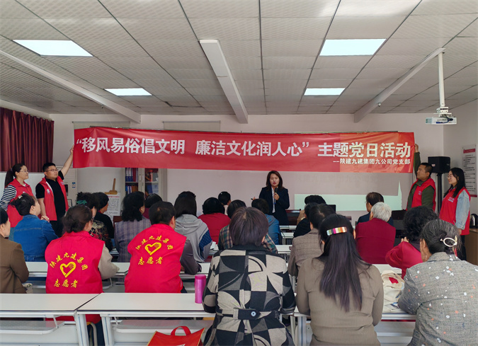 為進一步弘揚社會主義核心價值觀,破除陳規(guī)陋習,遏制不良風氣,引導廣大黨員和群眾破除鋪張浪費、婚喪大操大辦等陳規(guī)陋習,推動移風易俗和廉潔文化進一步提升,樹立勤儉節(jié)約、文明健康的生活方式。4月17日上午,九公司黨支部聯(lián)合龍洋社區(qū)開展“移風易俗倡文明 廉潔文化潤人心”主題黨日活動,活動特別邀請了榆林市新時代文明實踐移風易俗宣講老師肖敏為社區(qū)居民進行授課。